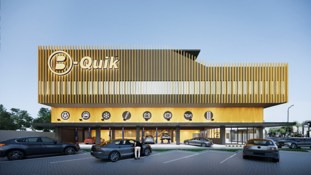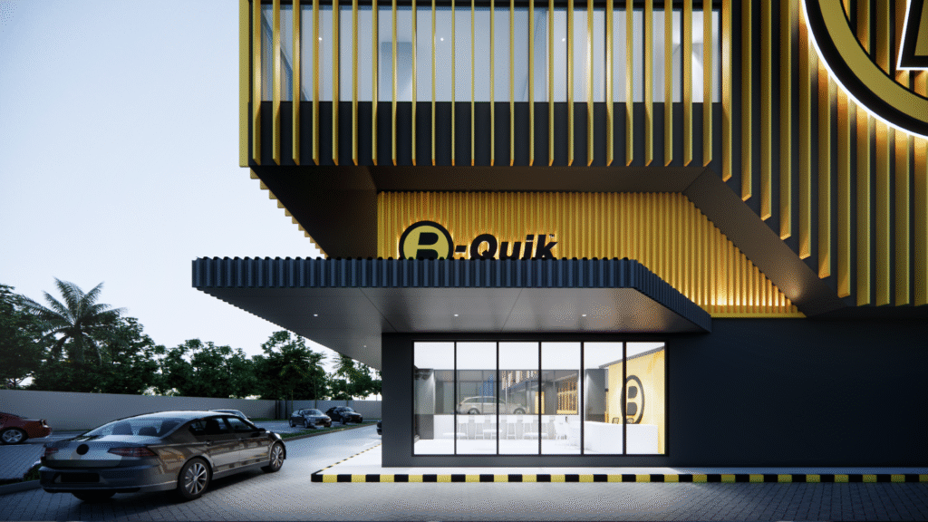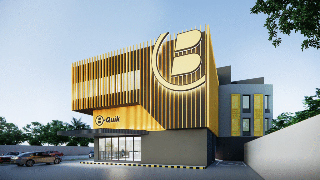 B-quik Store & Head Office Indonesia is designed with an industrial modern look, incorporating transparent elements that offer a sleek aesthetic. Well-organized and modular work zones enhance productivity, while the carefully planned lighting and ventilation systems ensure comfort and efficiency. The space also integrates a smart building system, optimizing energy use and operational performance.